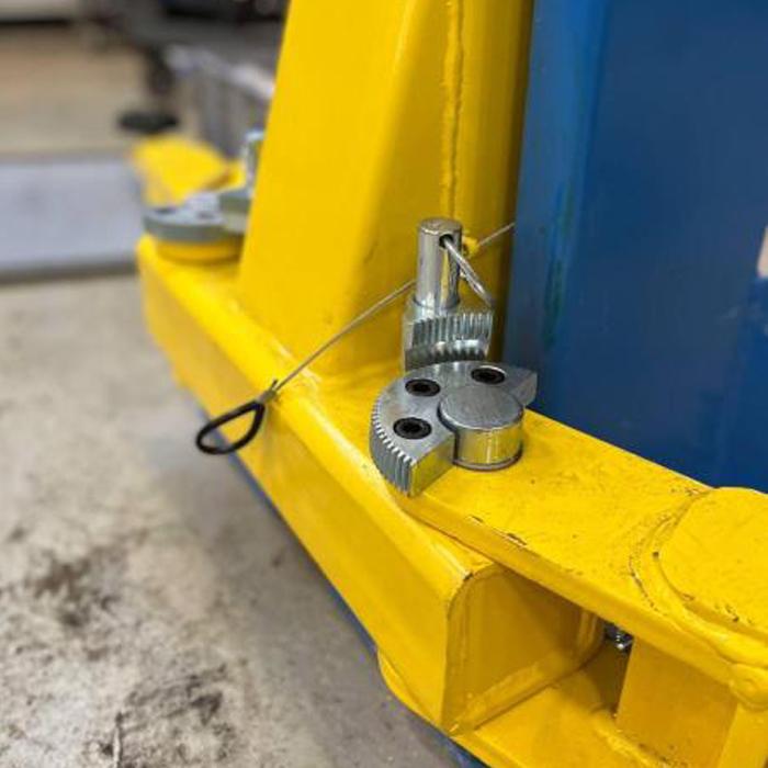 Двухстоечный электрогидравлический подъемник асимметричной конструкции с нижней синхронизацией. Снятие с замков безопасности ручное отдельно на каждой стойке.