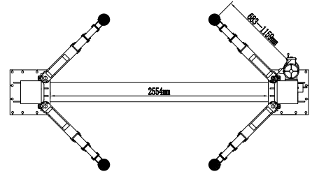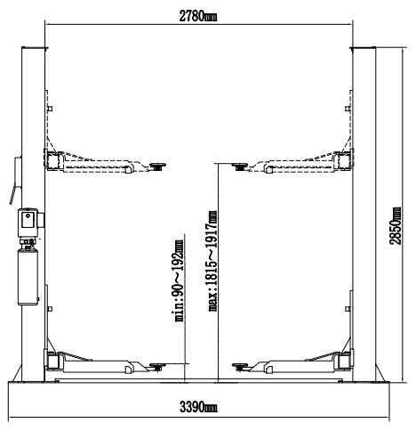 Двухстоечный электрогидравлический подъемник для легковых автомобилей, микроавтобусов, «джипов» и легких грузовиков типа «Газель» общей массой до 5 т. Верхняя синхронизация. Расположение стоек – симметричное. Электроуправление подъема и опускания.