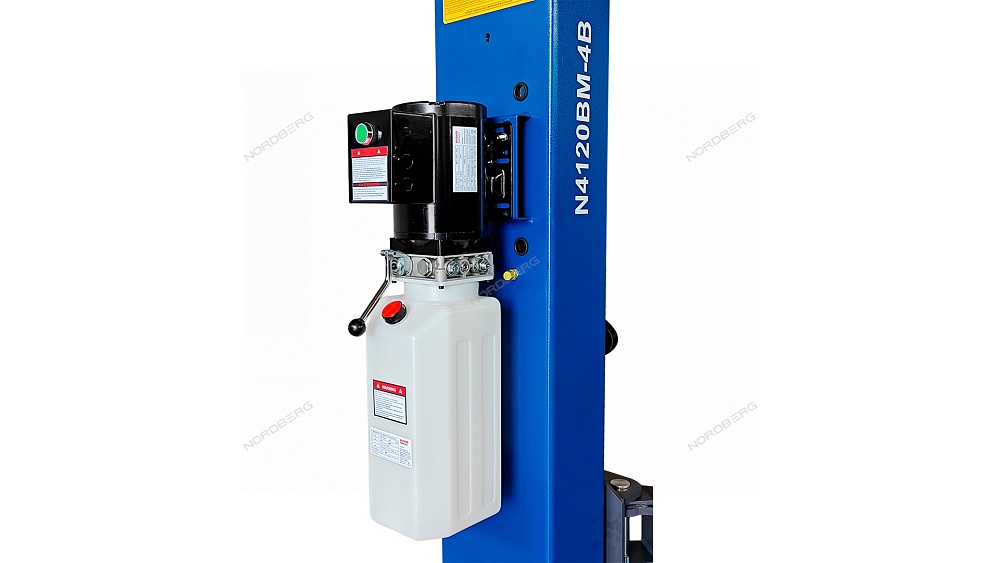 Подъемник 220V 2х стоечный 4т, со снятием стопоров с одной колонны (синий) NORDBERG N4120BM-4B