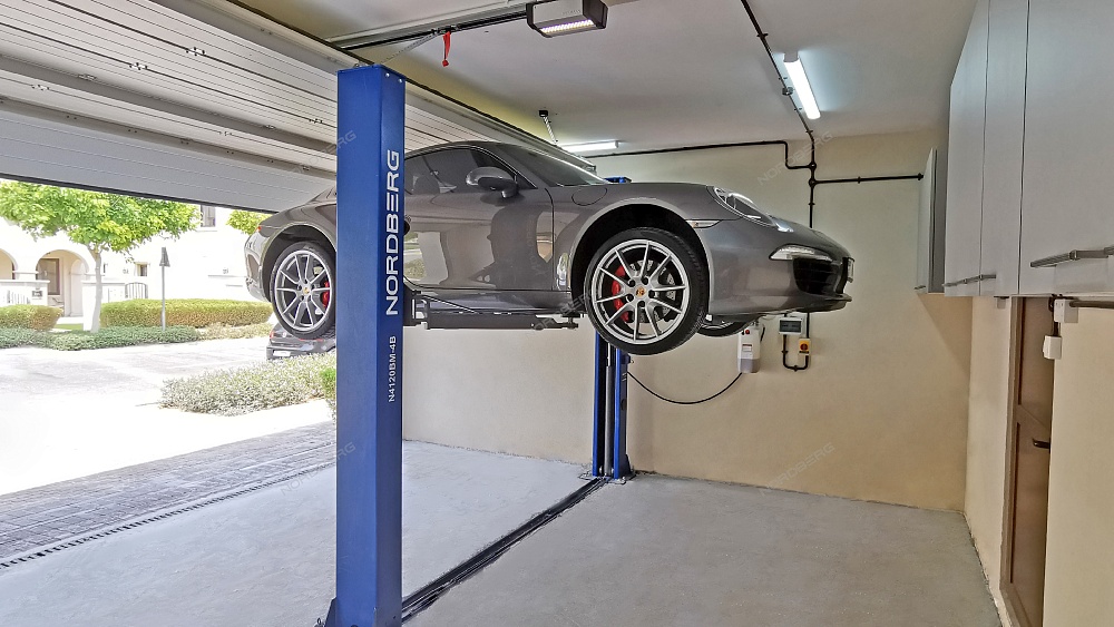 Подъемник 380V 2х стоечный 4т, со снятием стопоров с одной колонны (синий) NORDBERG N4120BM-4B купить в Саратове цена ✅ - Все для СТО