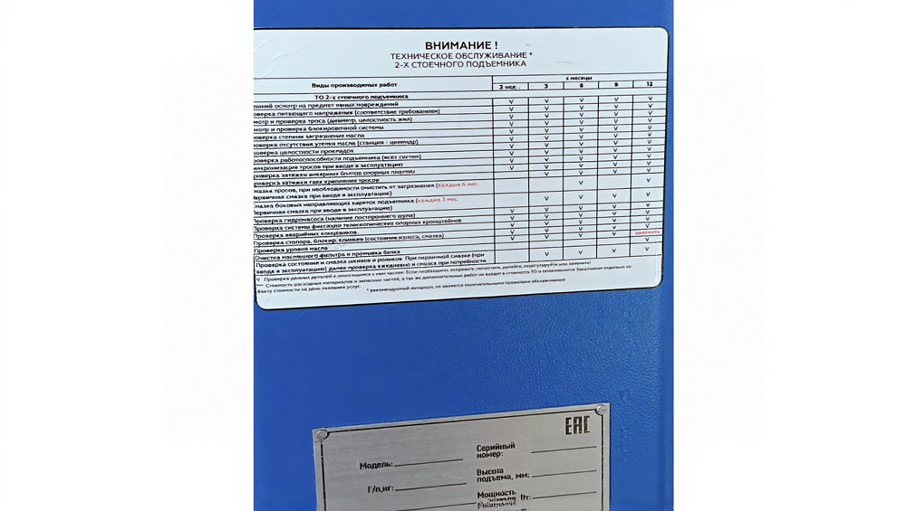 Высота подхвата подъемника позволяет обслуживать автомобили с низким клиренсом.