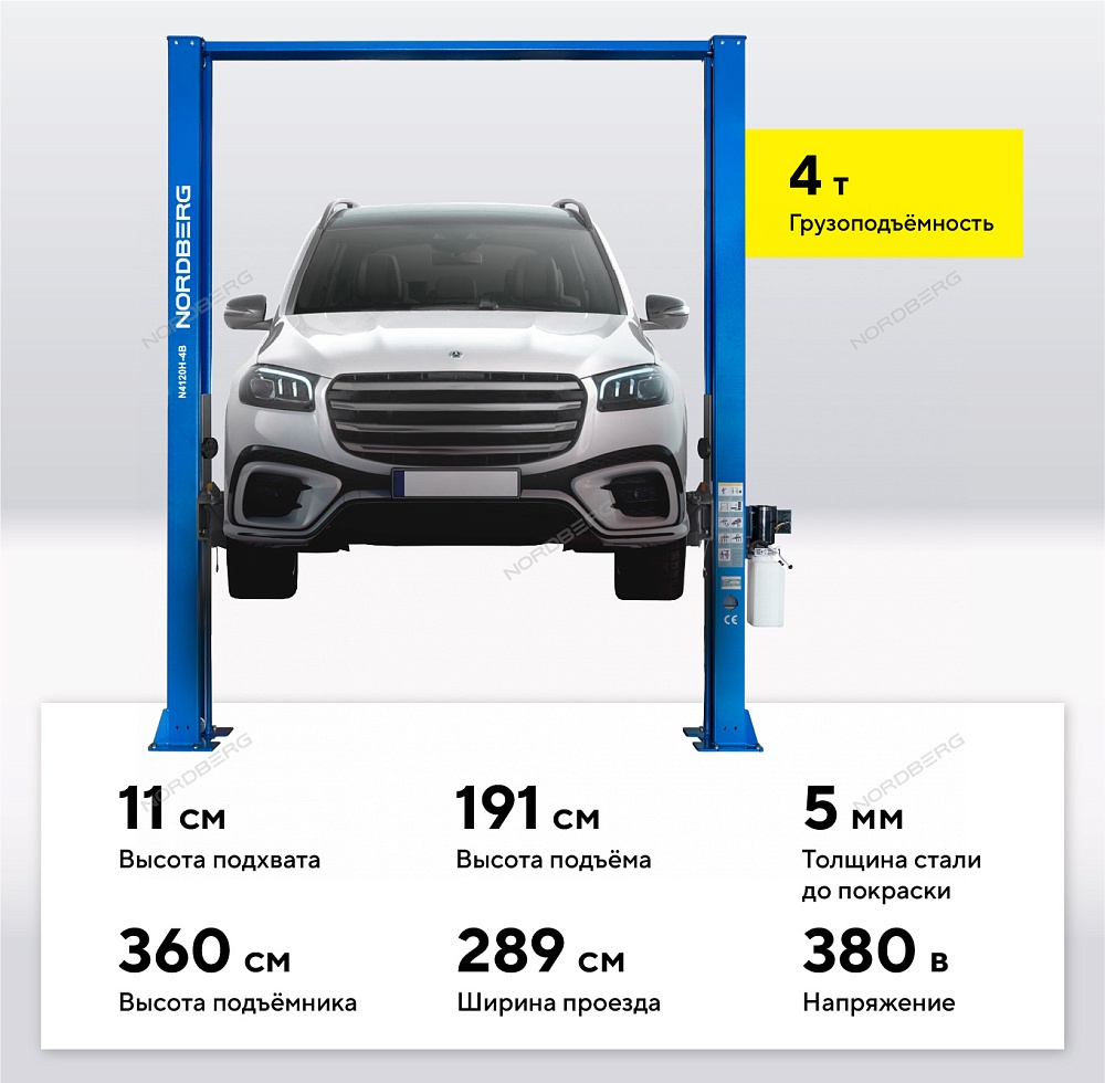 Двухстоечный подъемник NORDBERG N4120H-4B_3+2 – безопасное и надежное оборудование для проведения различных видов работ по обслуживанию и ремонту автотранспорта в автосервисах и СТО.
