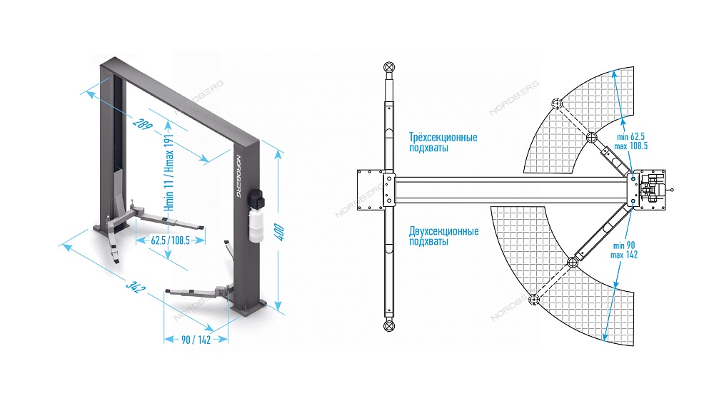 Двухстоечный подъемник NORDBERG N4120HE-4G_3+2 – безопасное и надежное оборудование для проведения различных видов работ по обслуживанию и ремонту автотранспорта в автосервисах и СТО.
