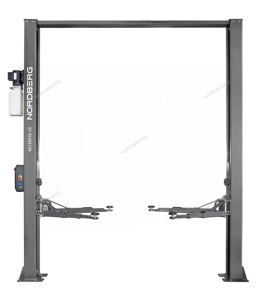 Подъемник двухстоечный 4 т, верхняя синхронизация, с электростопорами, H=3,6 м, 380 В, серый NORDBERG N4120HE-4G_3+2_380 купить в Саратове цена ✅ - Все для СТО