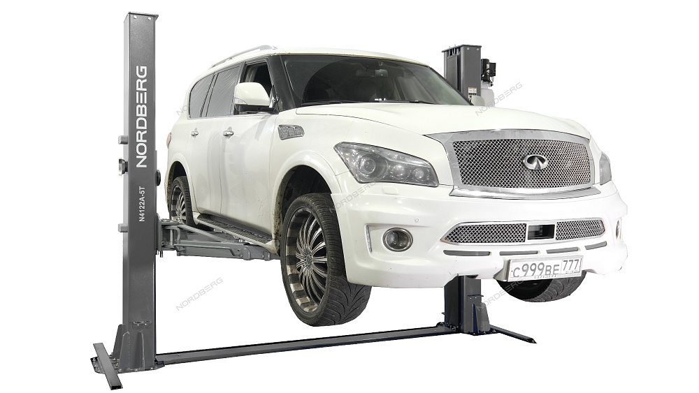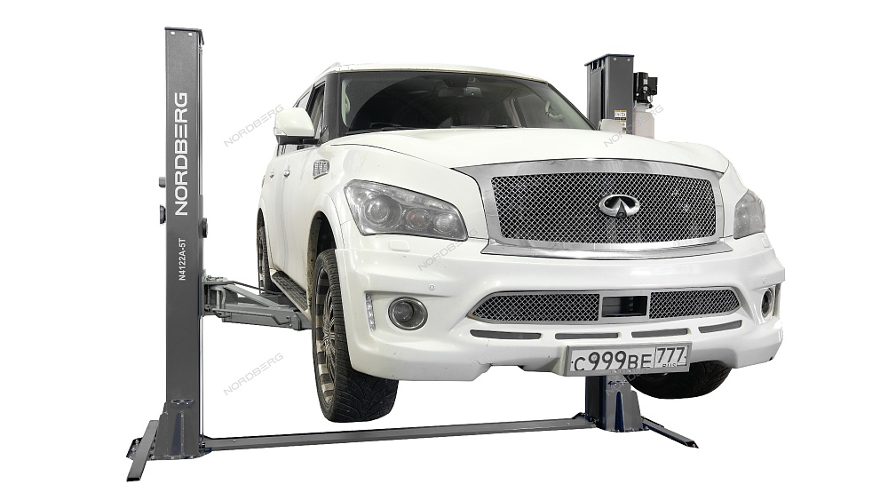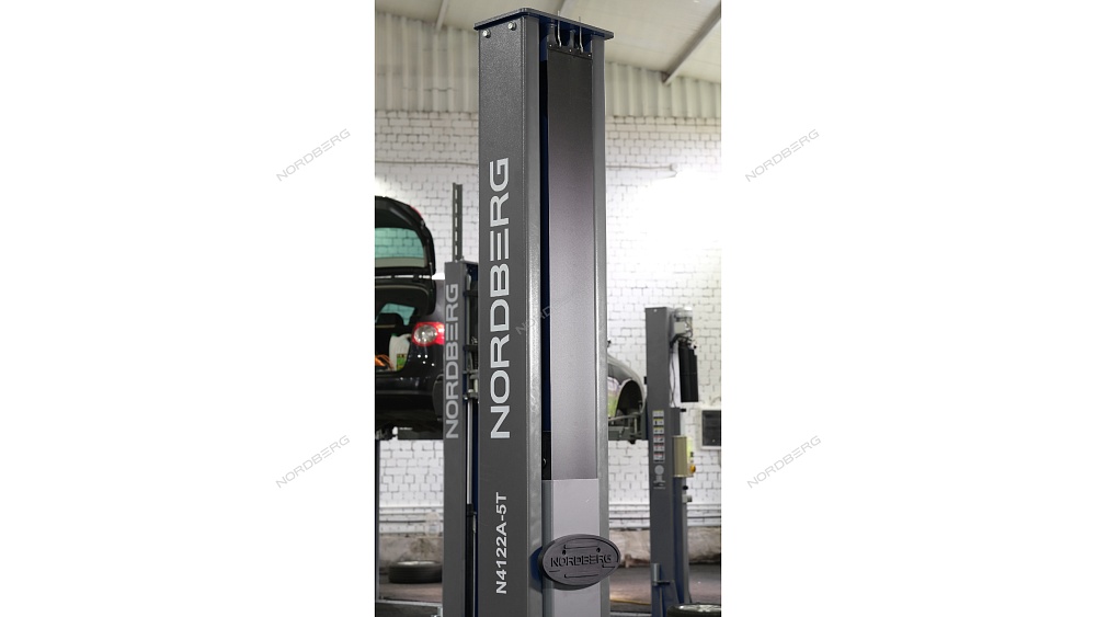 Подъемник двухстоечный 5 т, нижняя синхронизация, с электростопорами, 380 В, серый NORDBERG N4122AE-5G_380 купить в Саратове цена ✅ - Все для СТО