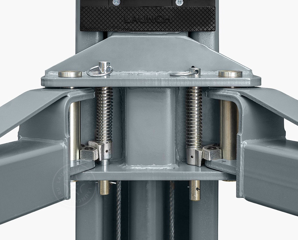 Управление стопорами с одной колонны при помощи автоматизированного пульта управления. Расположение гидростанции в верхней части колонны. Универсальные лапы подхвата  (длина передних – до 1120 мм, задних - 1365 мм). Двойной защитный трап. Усиленная конструкция элементов подъемника, шкивы увеличенного диаметра. Толщина металла профиля стойки – 5 мм. Элементы защиты в базовом комплекте поставки (гидравлические парашютные клапаны, защита движущихся механизмов, защитные рамки на лапах подхвата, резиновые накладки по всей высоте каретки). Высота подхвата от 110 мм. Максимальная высота подъема – до 1920 мм. Профессиональный Н-образный форм-фактор каретки.