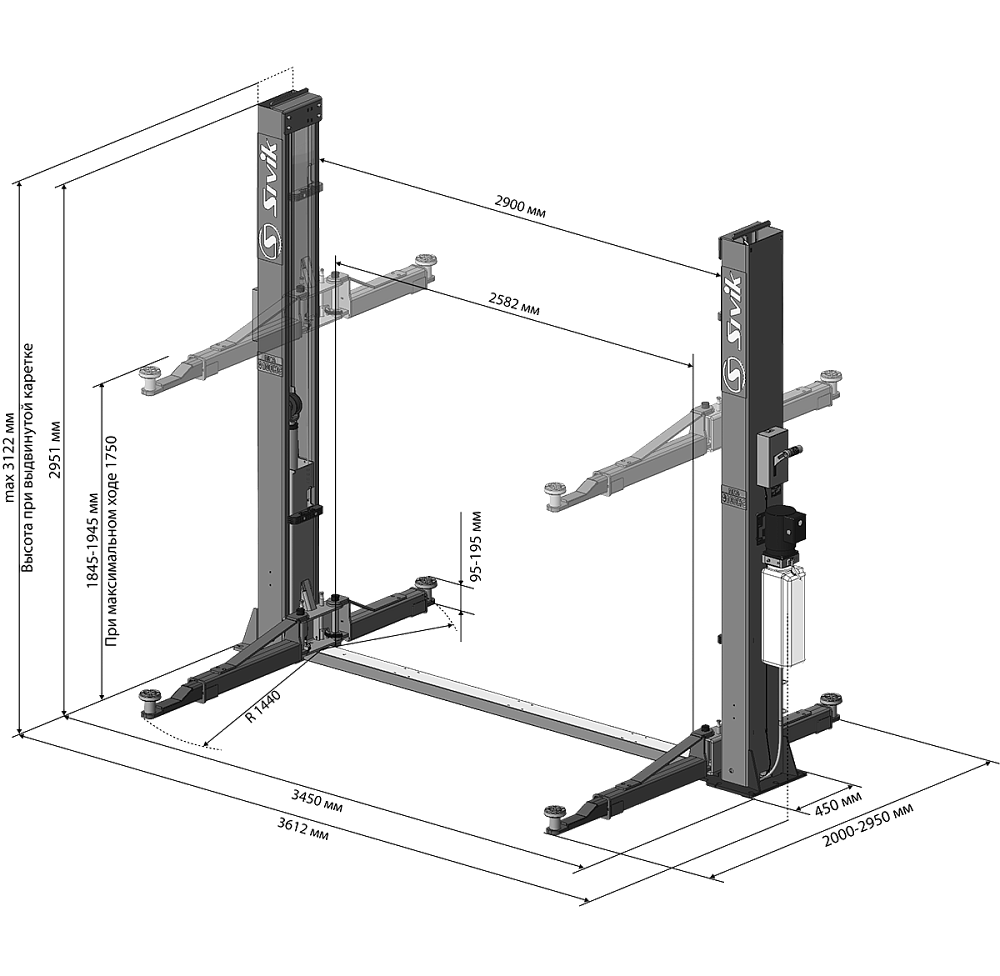 Подъемник двухстоечный Sivik ПГА-4100-НС 220В синий купить в Саратове цена ✅ - Все для СТО
