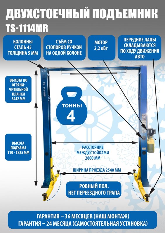 TS-1114MR подъемник 4 т, 2-х ст. электрогидравлический (2025) (380 V ТВ) купить в Саратове цена ✅ - Все для СТО