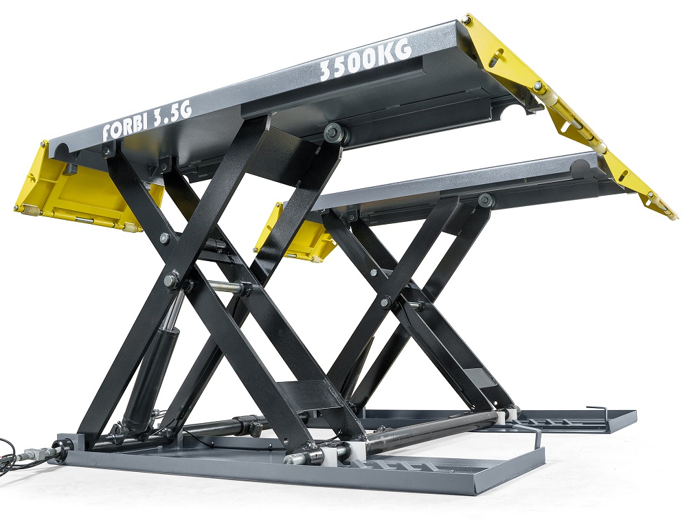 FORBI 3.5G/220 KraftWell Подъемник комплект (2 платформы, 2 гидр, цилиндра, гидростанция) ножничный, электрогидравлический, г/п 3500 кг., 220 В, 2,2 кВт, высота подъема 1000 мм., размеры платформ 1400-1940х530 мм., клиренс 110 мм.