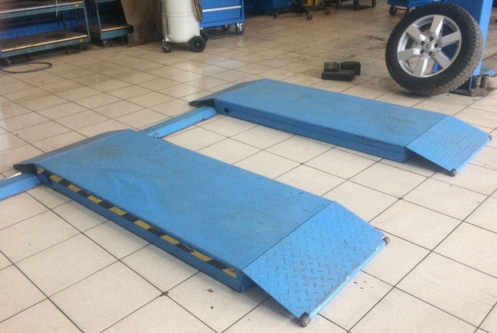 Ножничный  электрогидравлический   подъемник под сход развал, грузоподъемность 5.5т., длинна платформ 5018 мм.