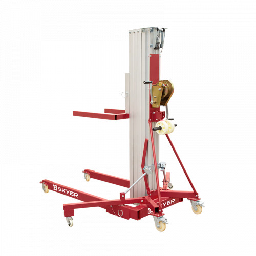 Телескопический подъемник SLA-10 представляет собой прочное, устойчивое и простое в использовании оборудование для подъема материалов. Складная мачта выполнена из легкого и долговечного алюминиевого сплава. Подъем груза осуществляется с помощью ручной лебедки. Для сборки и настройки материалоподъемника не требуются инструменты, с этим запросто справится один человек. Компактные размеры, малый вес и складные опоры упрощают хранение и транспортировку. Грузоподъемность модели достигает 400 кг.
