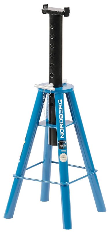 Подставка под машину регулируемая (комплект 2 шт.) NORDBERG. Для фиксации и страховки при поднятии автомобиля, для выполнения ремонтных работ. Высота подхвата регулируется. Фиксация производится с помощью пальца, который вставляется в отверстие и не дает штанге двигаться. Страховку от случайного выпадения с помощью цепочки.