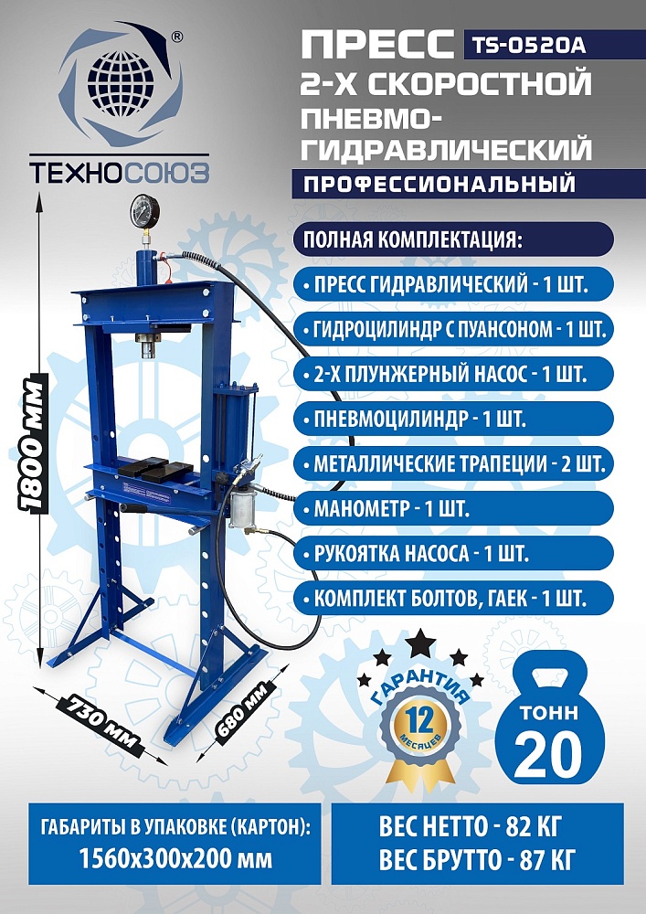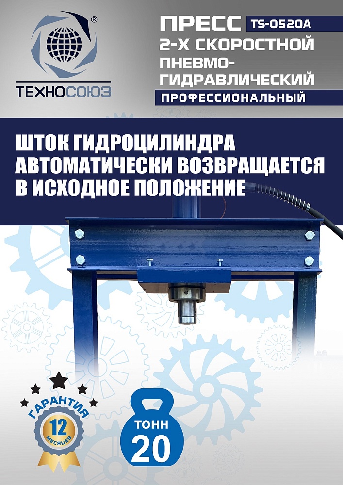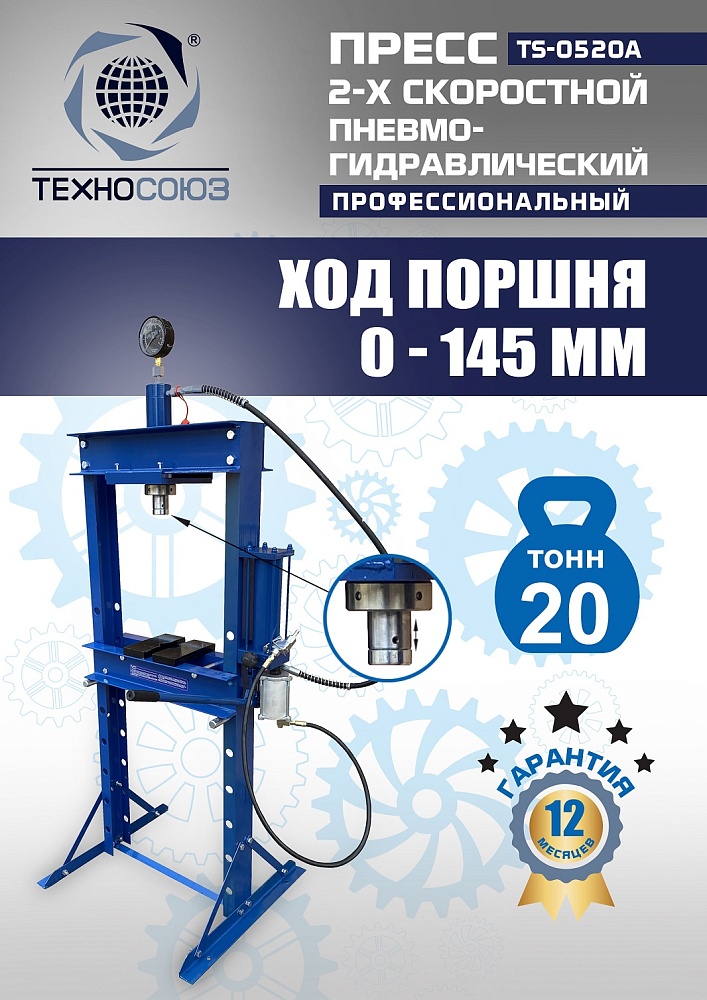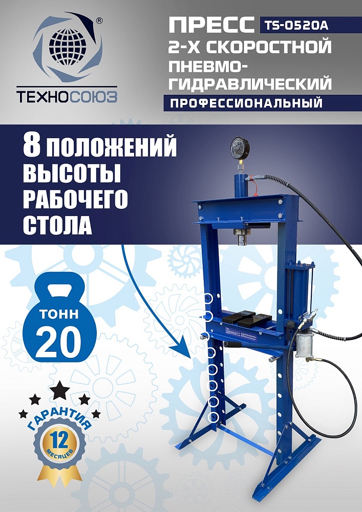 Пневмогидравлический пресс 20 тонн TS-0520A: скорость и точность для автосервиса