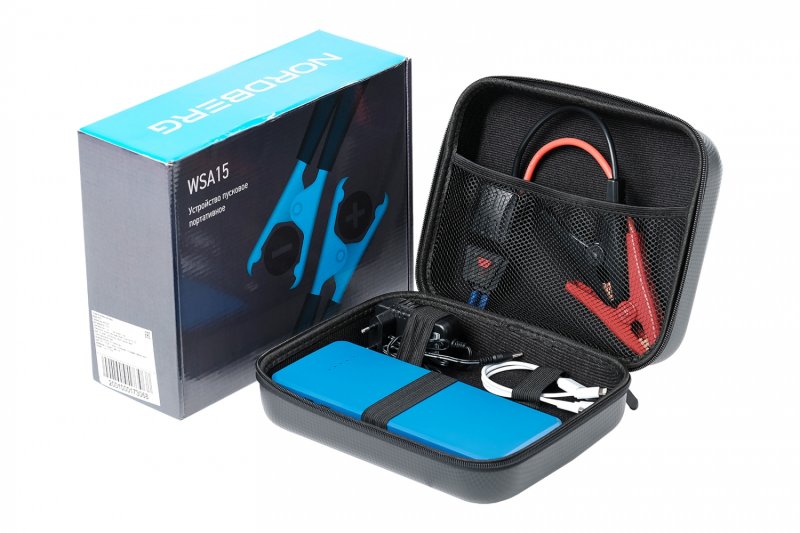 Пуско-зарядное портативное устройство NORDBERG WSA15 – компактная модель для запуска двигателя легковых автомобилей и мототехники с разрядившейся АКБ, а также зарядки аккумуляторных батарей.