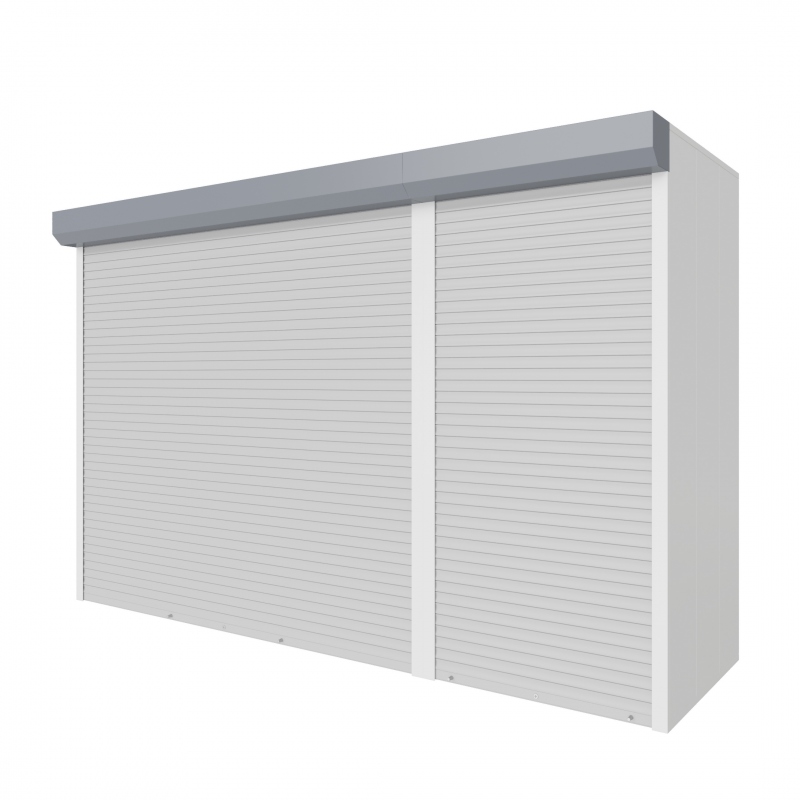 Двухсекционные роллетные шкафы представляют собой сборно-разборную конструкцию, состоящую из набора панелей, соединительной рамы и двух комплектов роллетных модулей.