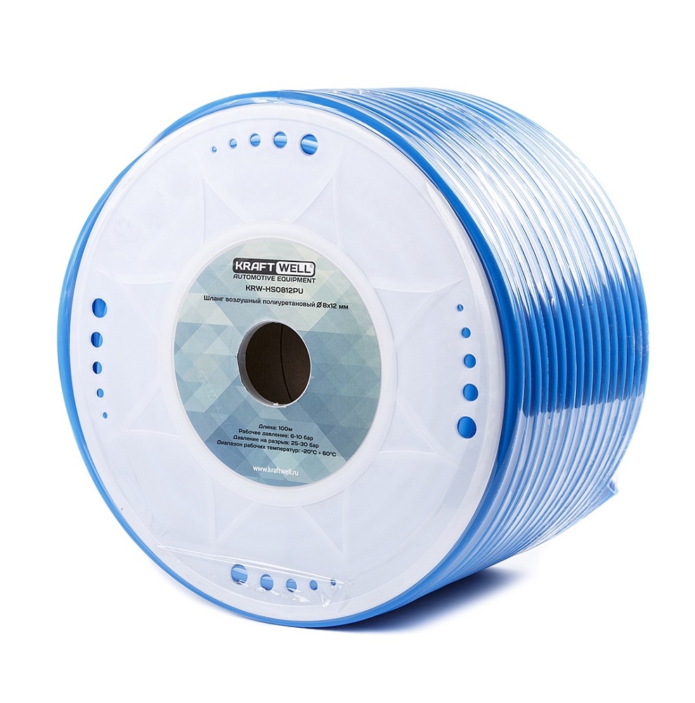 KraftWell KRW-HS0812PU Шланг воздушный полиуретановый на катушке D8X12 мм, 100 м купить в Саратове цена ✅ - Все для СТО