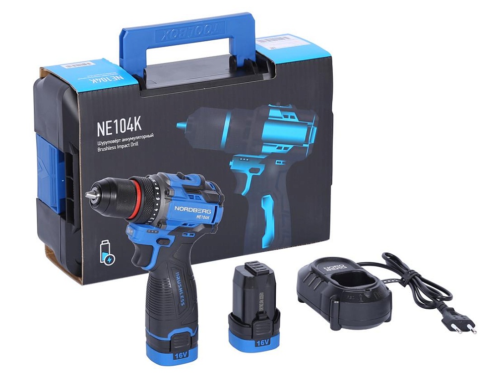 Шуруповерт аккумуляторный макс.диам. сверла 10 мм, 16 В, 60 Нм с 2 аккумуляторами и зарядным уст-вом NORDBERG NE104K купить в Саратове цена ✅ - Все для СТО