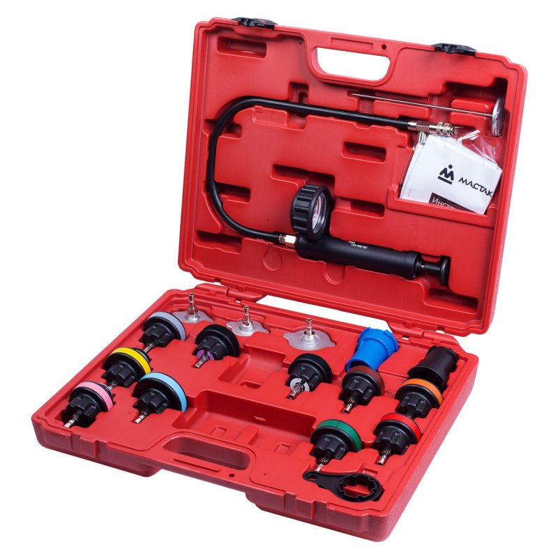Набор для тестирования герметичности системы охлаждения, кейс, 18 предметов МАСТАК 103-40018C. Применяется для опрессовки системы охлаждения автомобиля. Набор поможет проверить на герметичность охладительную систему практически любого автомобиля, как нового поколения, так и более ранних годов выпуска.