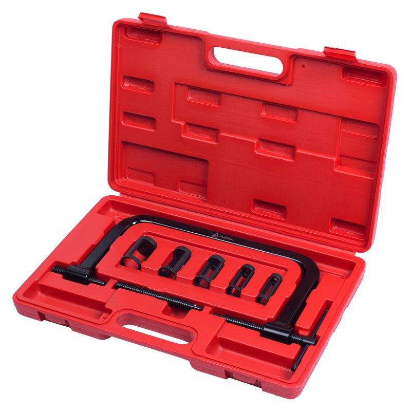 Рассухариватель клапанов универсальный, струбцина, кейс, 7 предметов МАСТАК 103-10006C