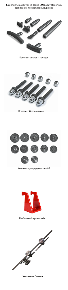 Стенд для правки дисков «Фаворит-Престиж» предназначен для правки особо сложных повреждений литых и кованых легкосплавных дисков, а также для правки «восьмерки» и спиц дисков от 10 до 26 дюймов включительно (от 22-х дюймов используйте мобильный кронштейн). Рама изготовлена с допустимыми нагрузками до 12 тонн. Вал изготовлен из высоколегированной конструкционной стали с повышенной износостойкостью и прочностью. Стенд оснащен запатентованными специальными болтами для крепления дисков и усиленной планшайбой.