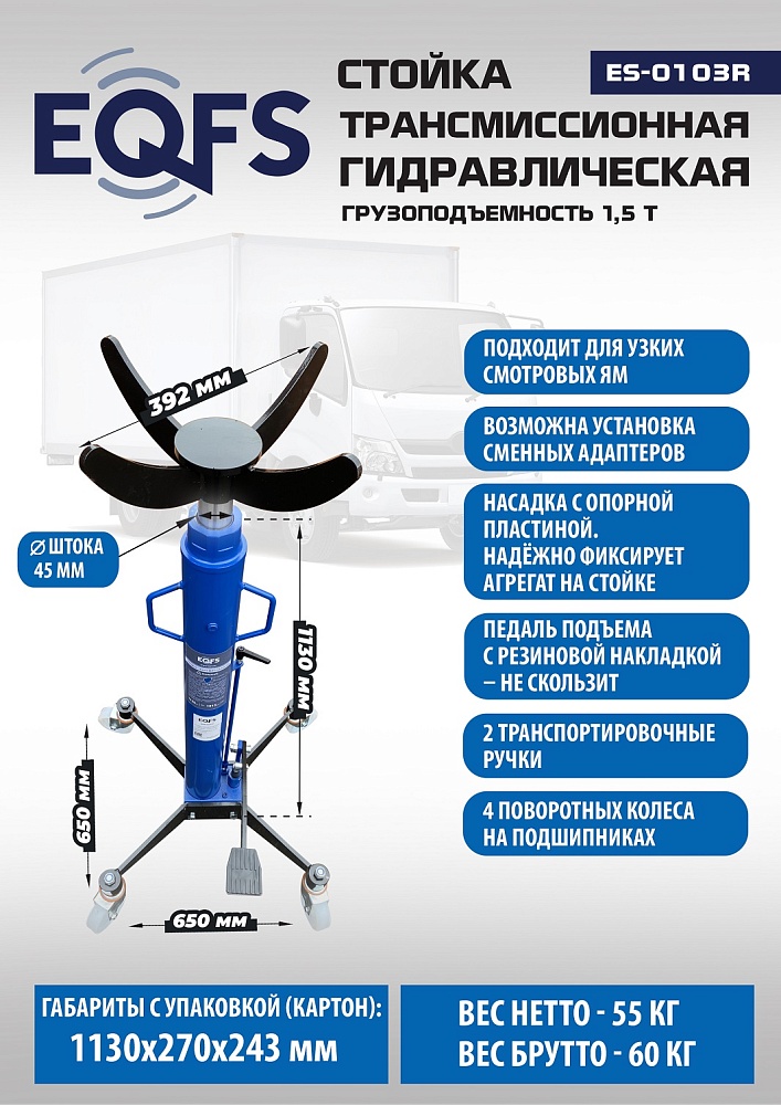 ES-0103R Стойка трансмиссионная гидравлическая 1,5т купить в Саратове цена ✅ - Все для СТО