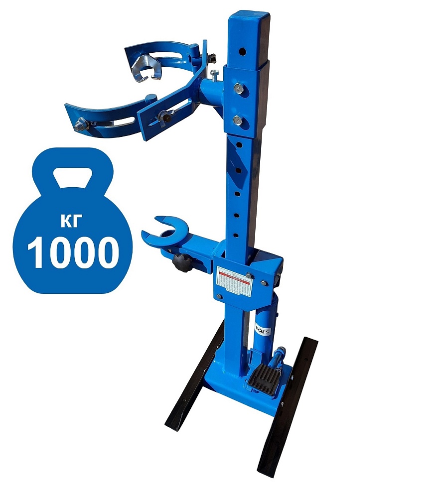 Стяжка для пружин профессиональная с гидравлическим цилиндром усилием 1000 кг . Ход поршня 220 мм. Диаметр пружины 125-165 мм. Ножной привод подъема и опускания. Предназначена для стяжки пружин легковых автомобилей. Цвет темно-синий.