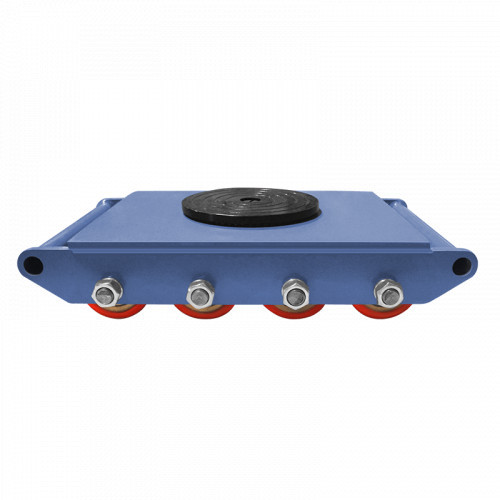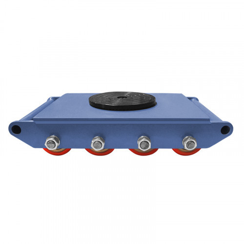 Большая площадь опоры исключает повреждение поверхности пола. Прочная рама не подвержена деформациям. Механизм поворота позволяет легко разворачивать на 360 градусов любой груз. Максимальная грузоподъемность модели — 18 т, количество роликов — 12 шт.