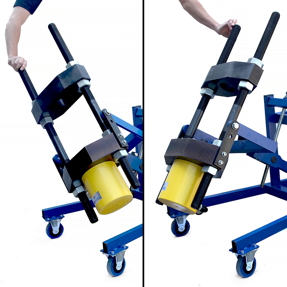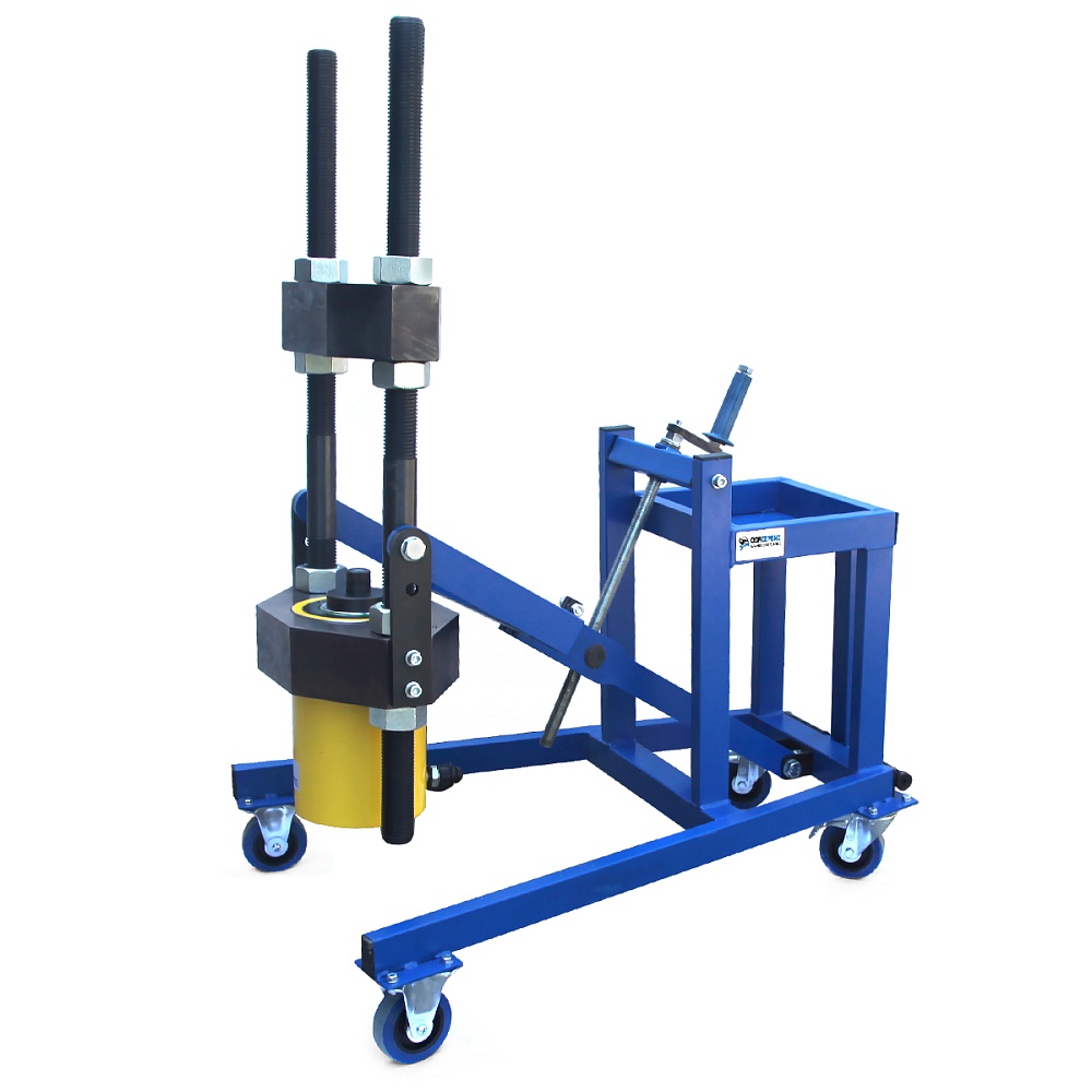 Мощный гидравлический мобильный пресс с усилием 100 тонн позволяет быстро и безопасно выпрессовывать шкворни грузовых автомобилей без разборки оси.