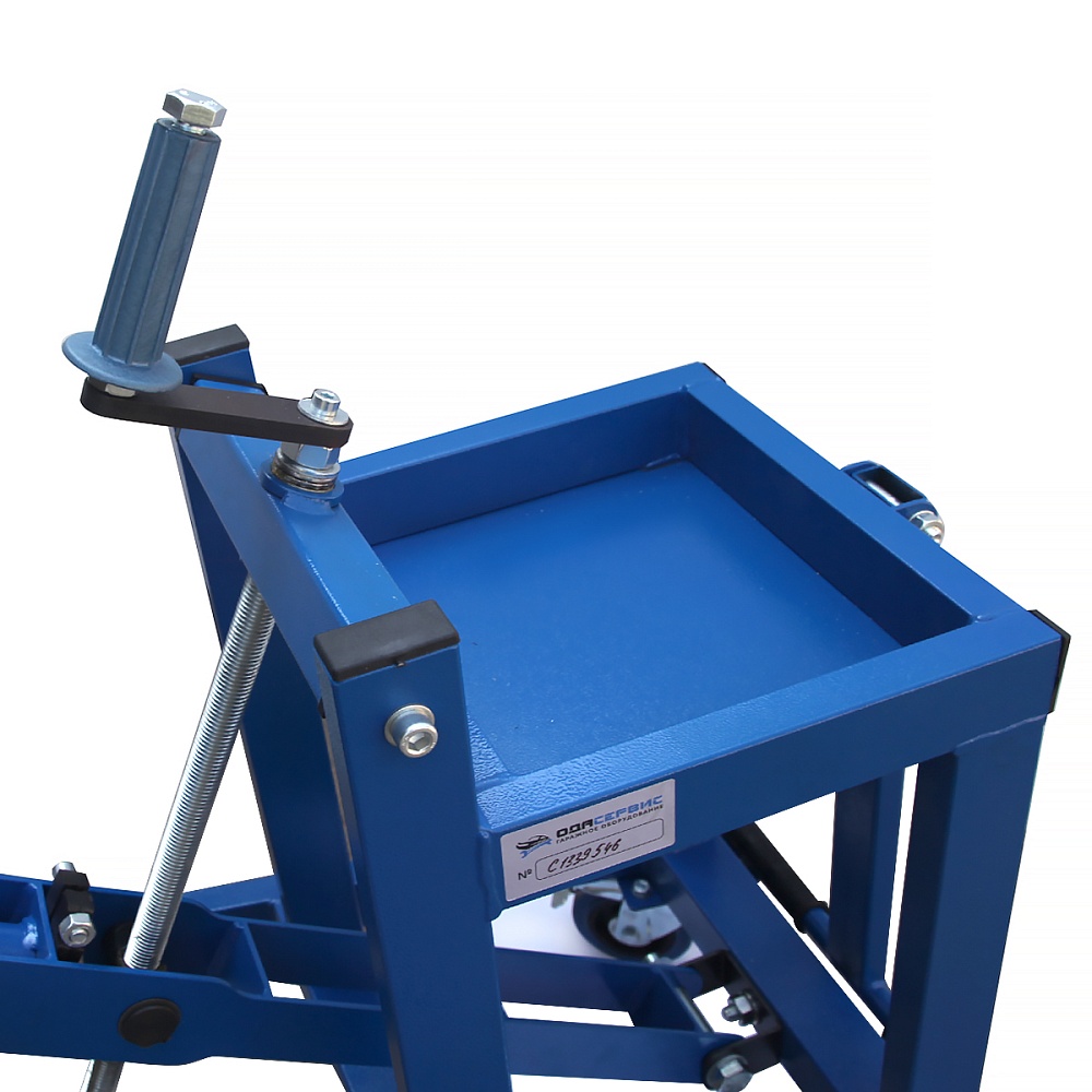 Оснащён поворотно-подъёмным механизмом и тележкой, что обеспечивает удобство работы даже в труднодоступных зонах колесной ниши.