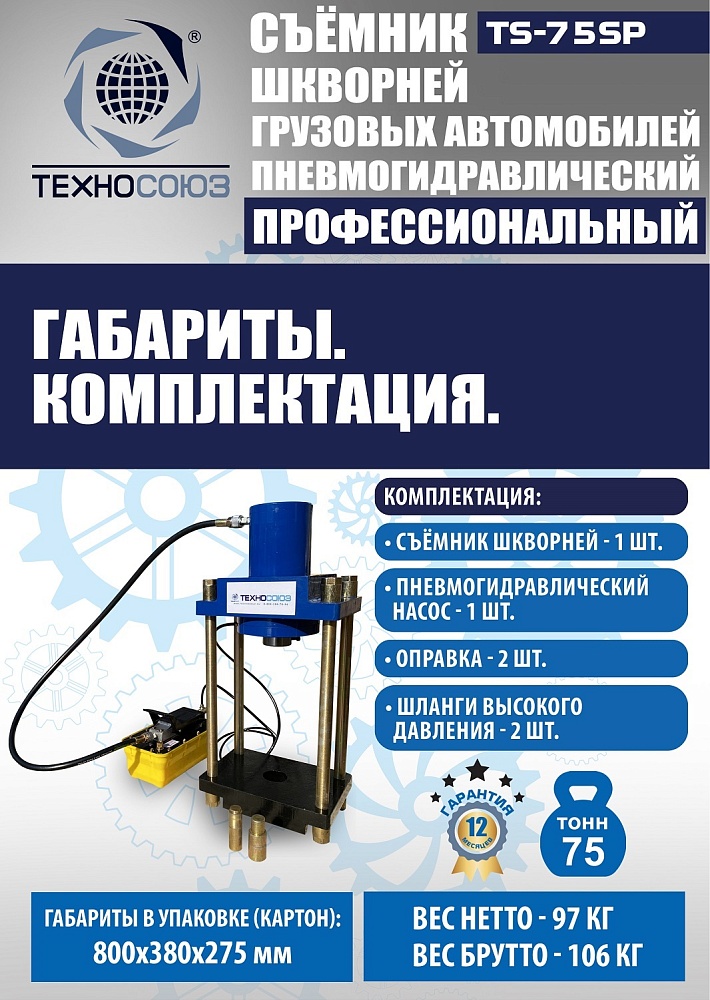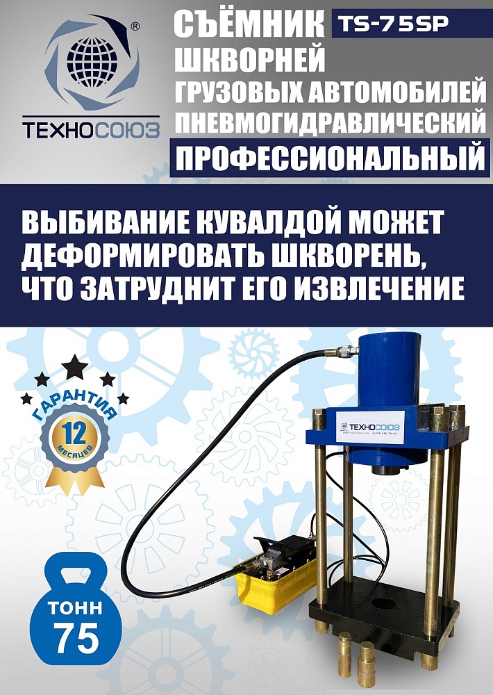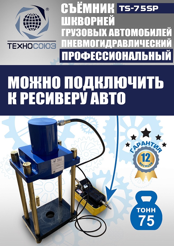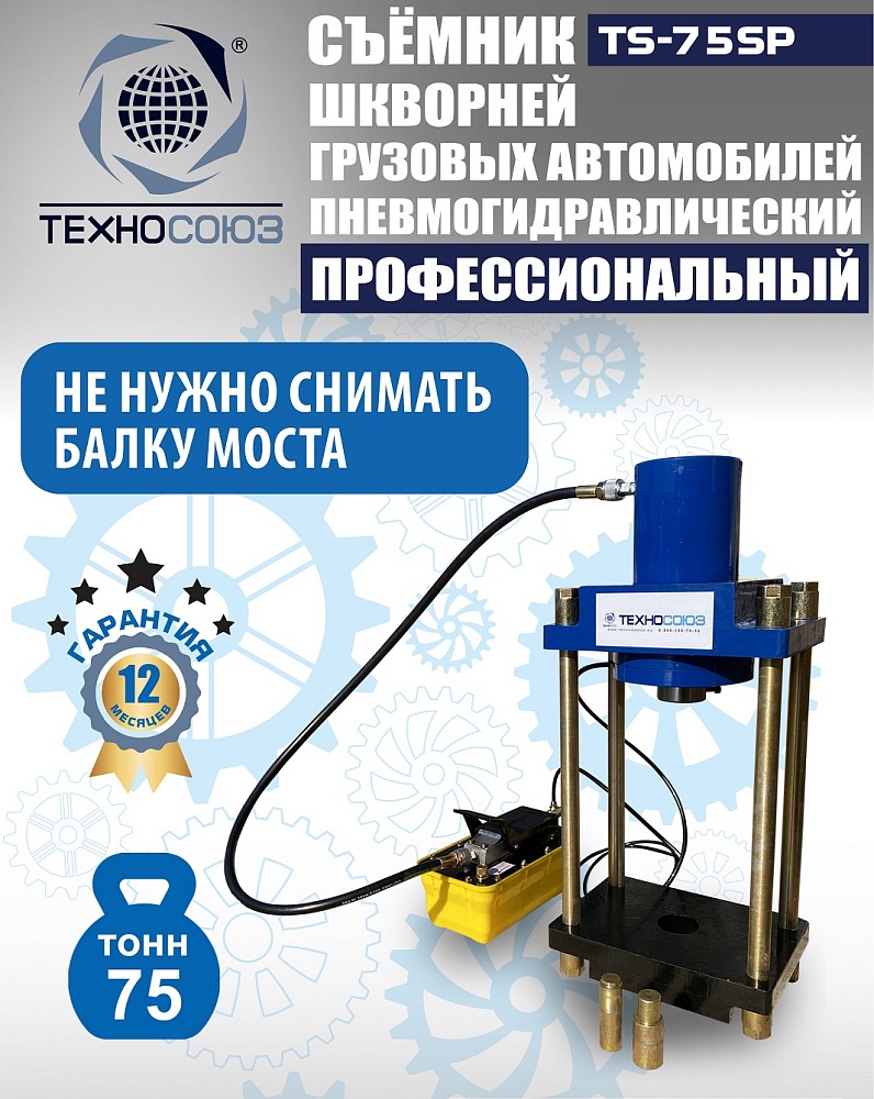 Пневмогидравлический выпрессовщик шкворней TS-75SP | 75т Ø60 мм
