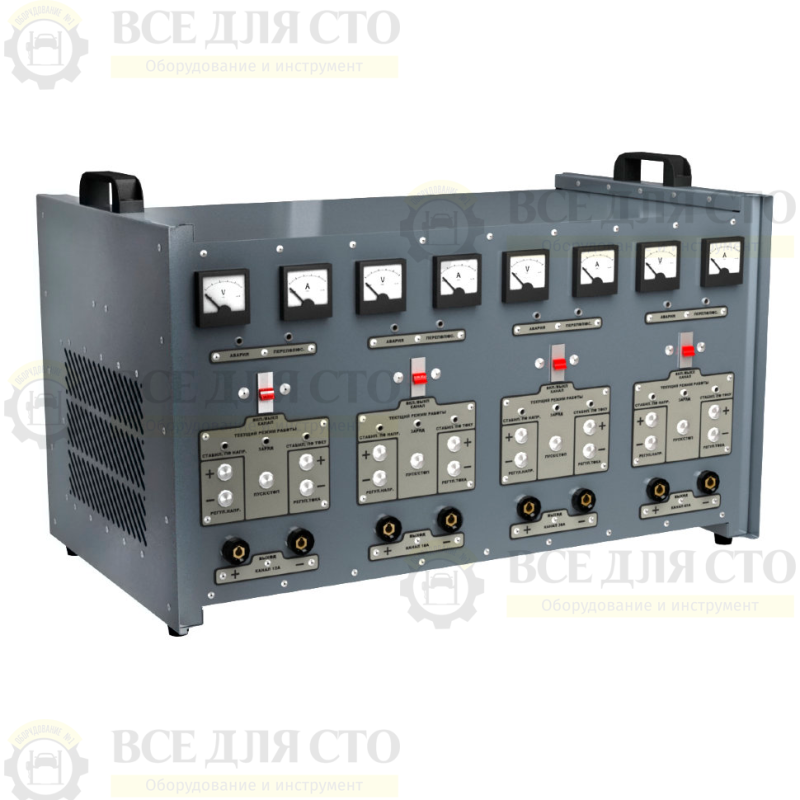 Устройство оснащено аналоговыми приборами для контроля напряжения и силы тока. Каждый канал имеет индивидуальные органы управления, что позволяет настраивать и работать с абсолютно разными АКБ одновременно.